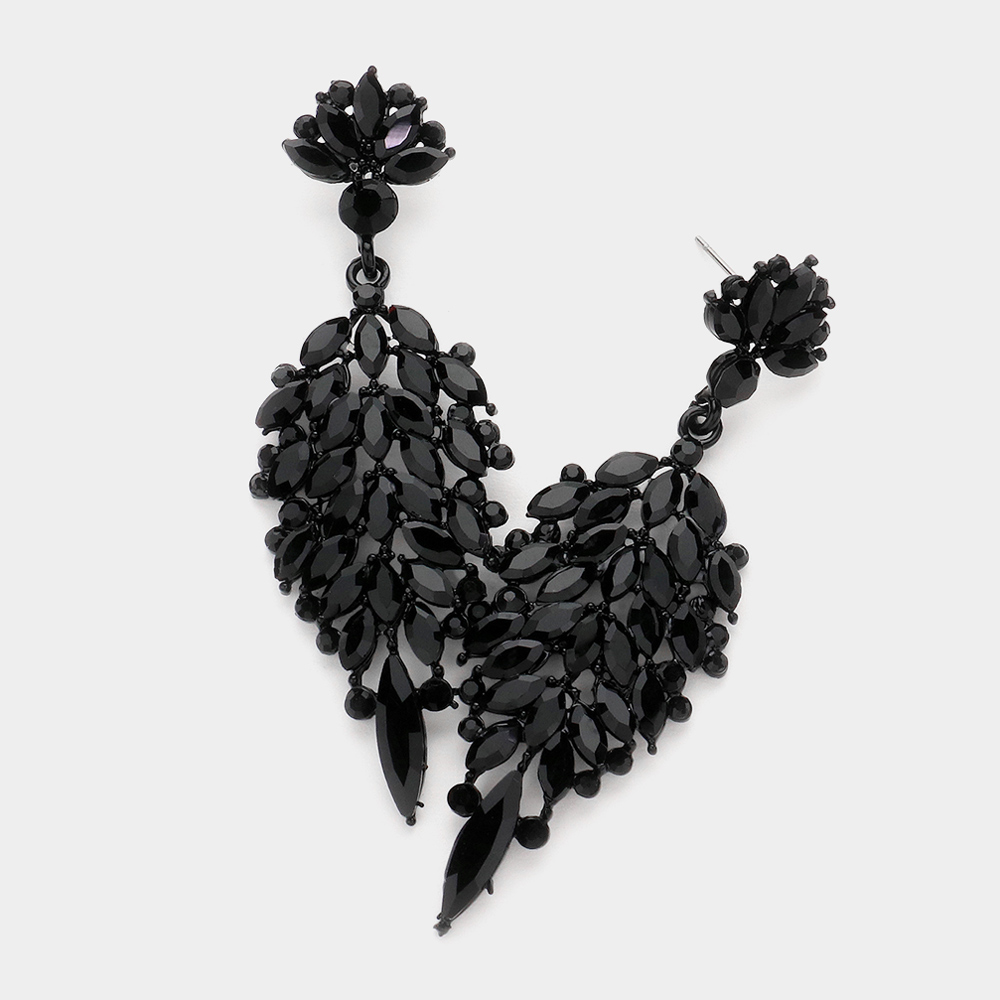 Marquise Stone Cluster Embellished Teardrop Stone Tip Dangle Drop Evening Earrings