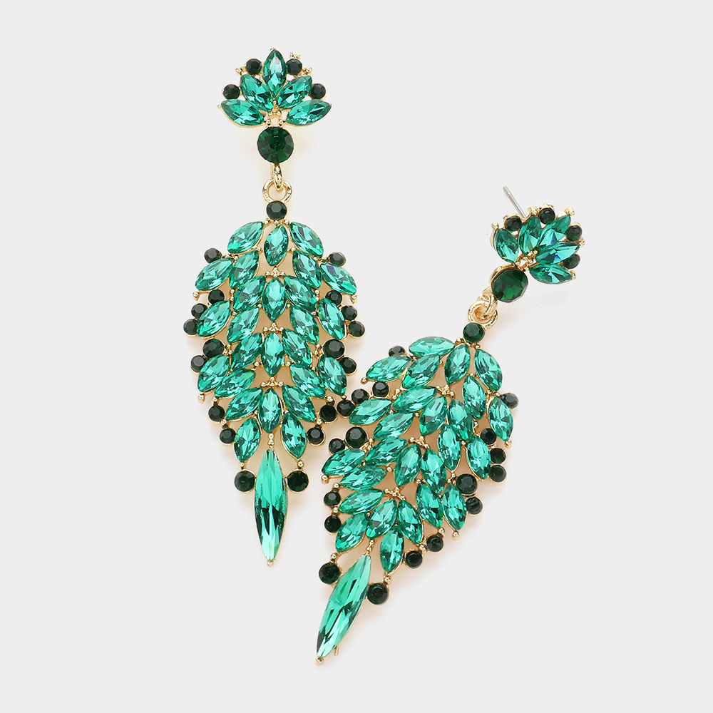 Marquise Stone Cluster Embellished Chandelier Dangle Evening Earrings