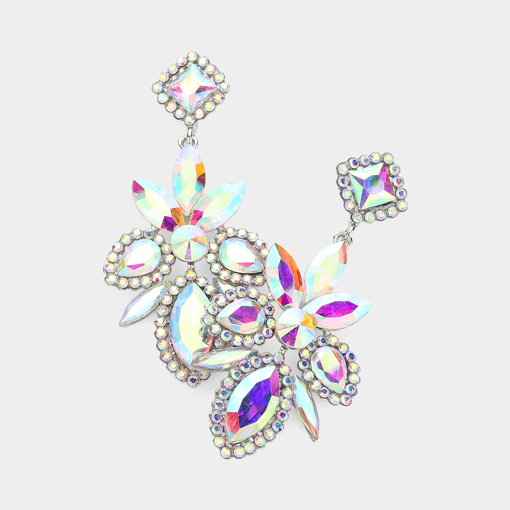 Marquise Stone Cluster Embellished Dangle Evening Earrings