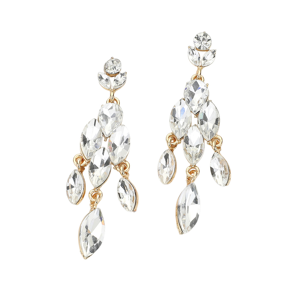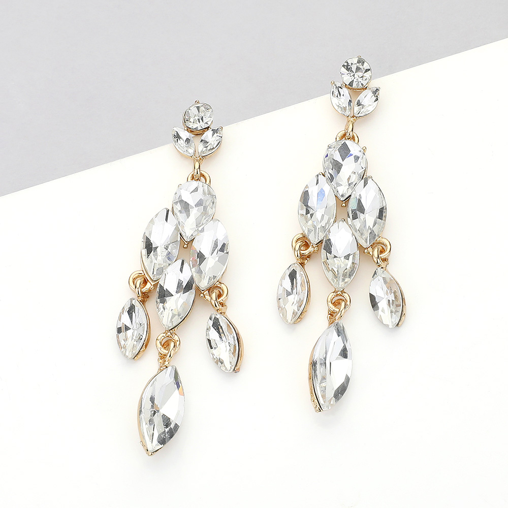 Marquise Stone Cluster Embellished Dangle Evening Earrings Marquise Stone Cluster Embellished Dangle Evening Earrings