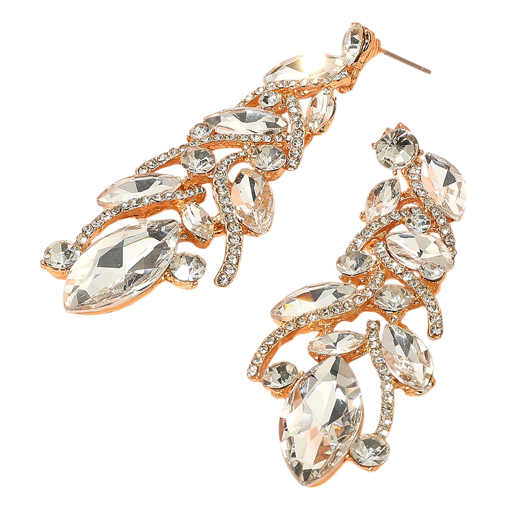 Details • Size : 1.25" X 3.25" • Post Back • Elevate your style with these radiant drop earrings, featuring an intricate leaf design encrusted with shimmering crystals. Ideal for weddings, galas, and special events that demand glamorous, eye-catching accessories. • Lead and Nickel Compliant