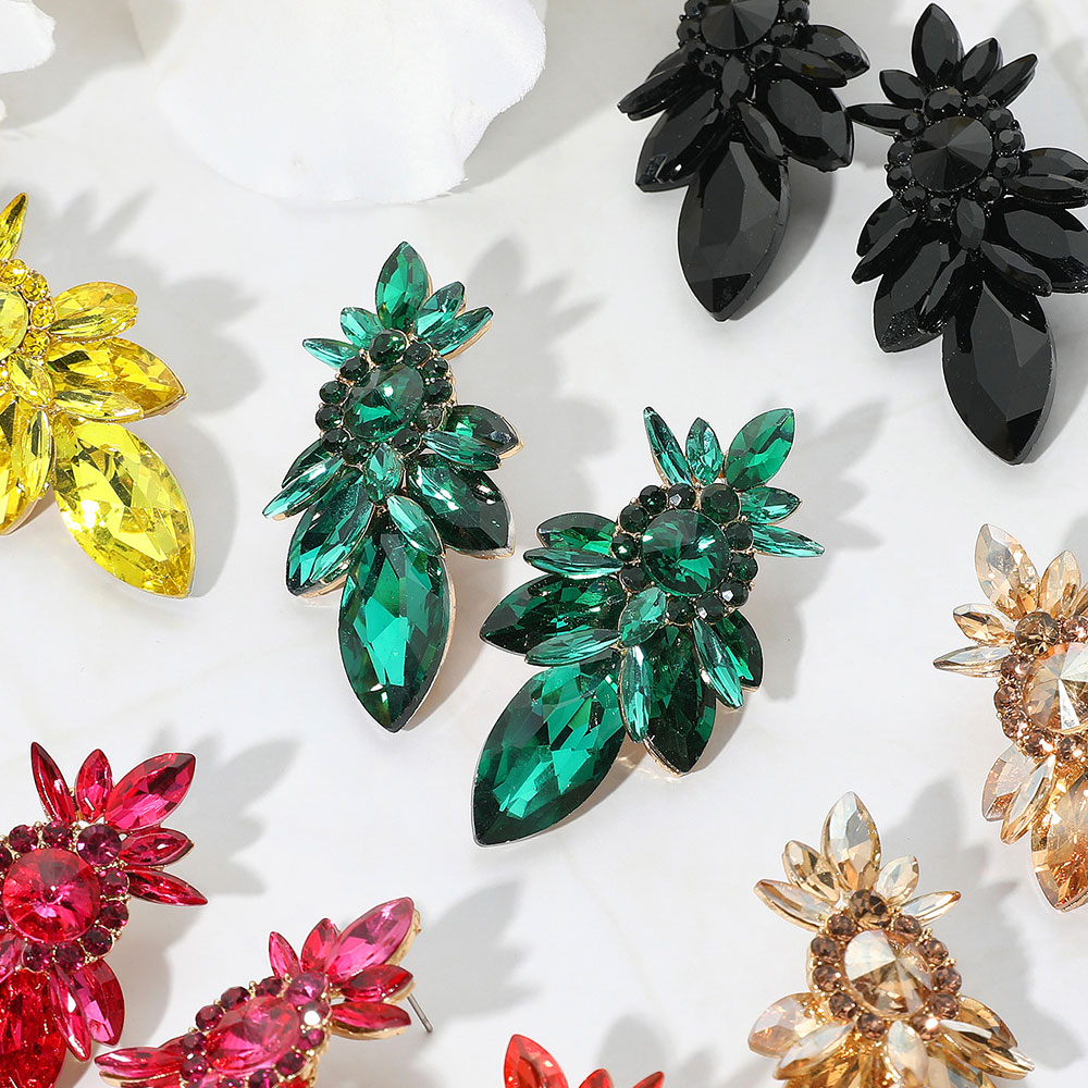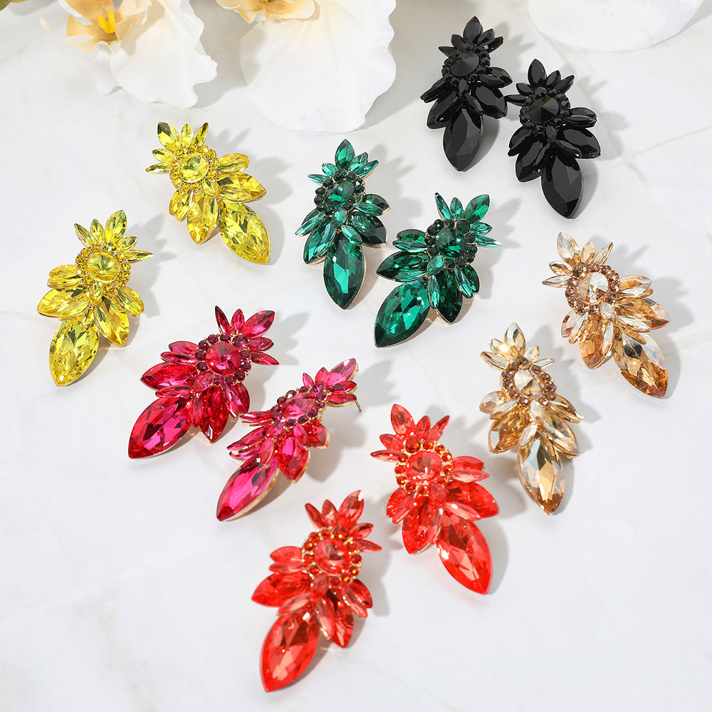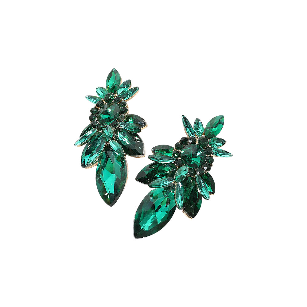 Teardrop Accented Marquise Stone Trimmed Dangle Evening Earrings