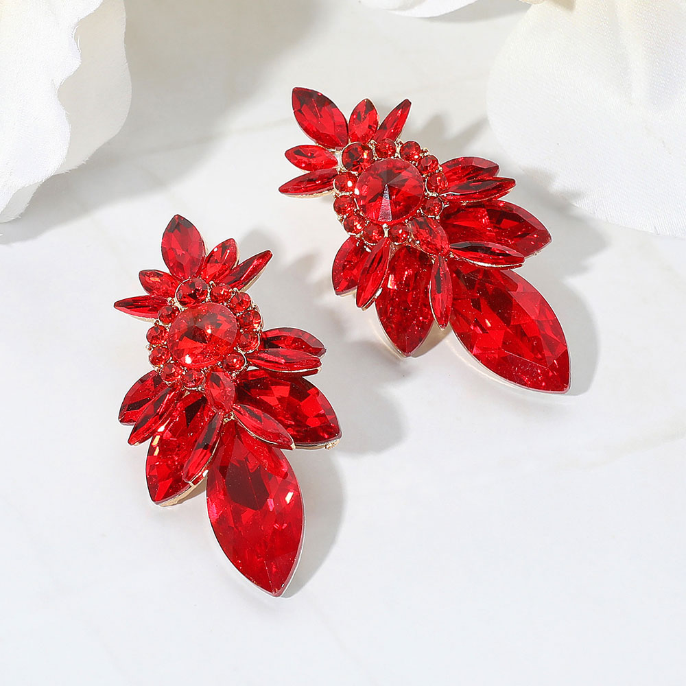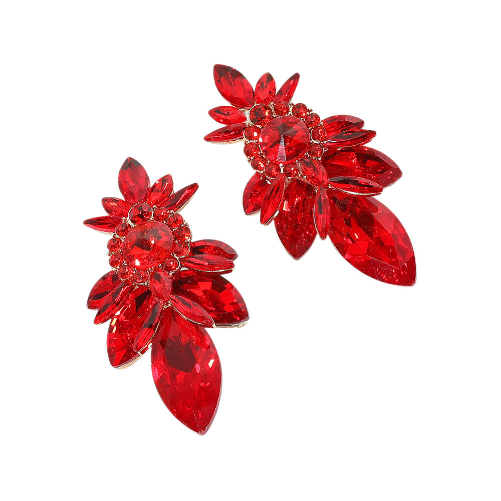 Marquise Teardrop Stone Accented Rhinestone Paved Dangle Evening Earrings