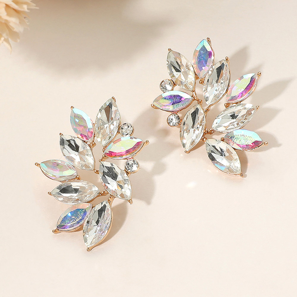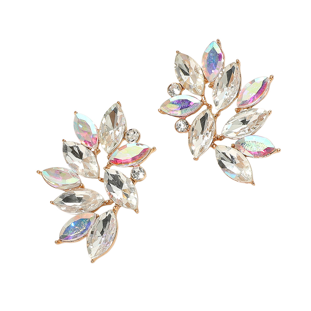 Details • Size : 1.1" X 1.5" • Post Back • Bold and eye-catching statement earrings with a cluster of marquise-cut crystals arranged in a leaf-inspired design. Perfect for adding instant glamour to any look, these earrings are ideal for parties, special occasions, and making a stylish, unforgettable impression. • Lead and Nickel Compliant