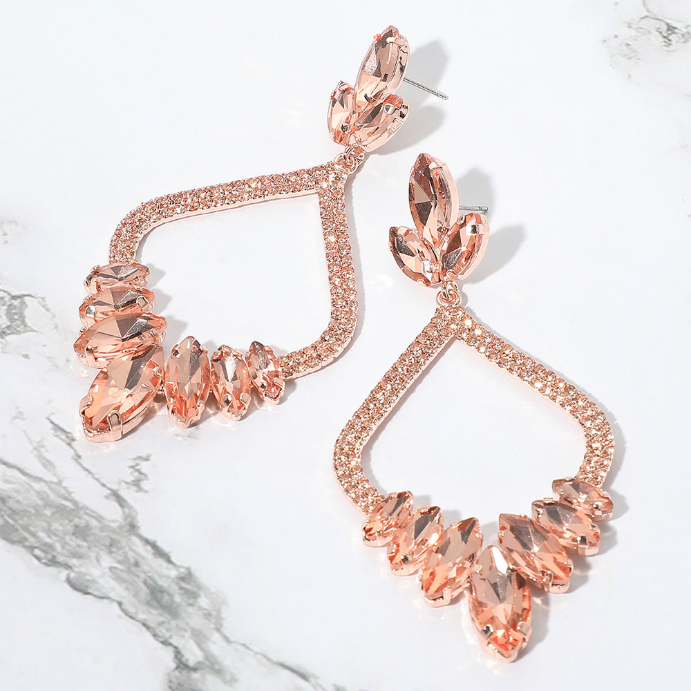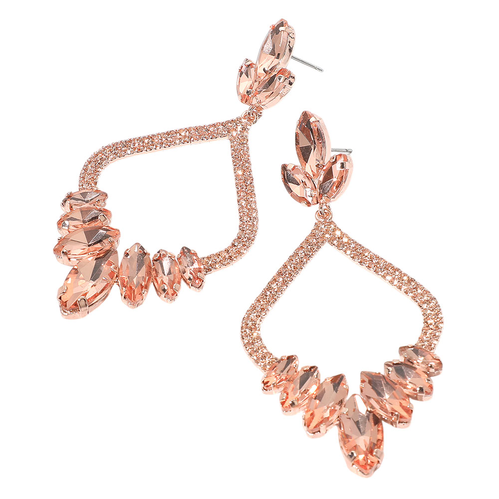 • Elegant marquise stone statement earrings with a teardrop silhouette. Perfect for evening events, parties, or holiday glam. Lightweight design with secure post backs adds comfort and drama to any look. A best-seller for boutiques seeking bold, eye-catching accessories.