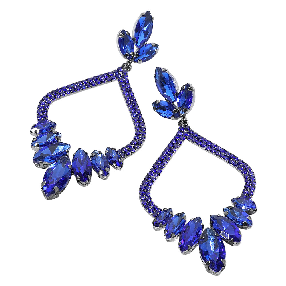 • Elegant marquise stone statement earrings with a teardrop silhouette. Perfect for evening events, parties, or holiday glam. Lightweight design with secure post backs adds comfort and drama to any look. A best-seller for boutiques seeking bold, eye-catching accessories.