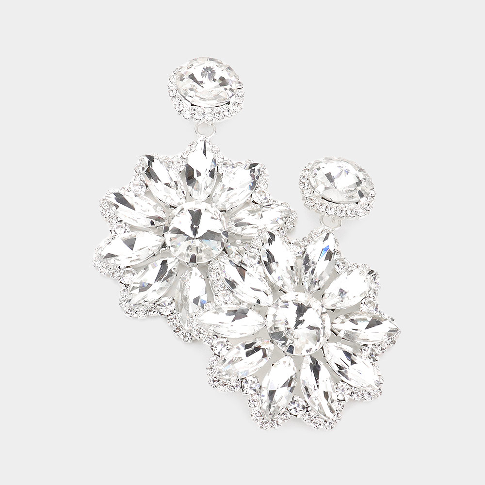 Marquise Stone Cluster Flower Dangle Evening Earrings