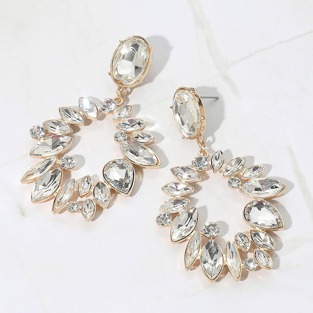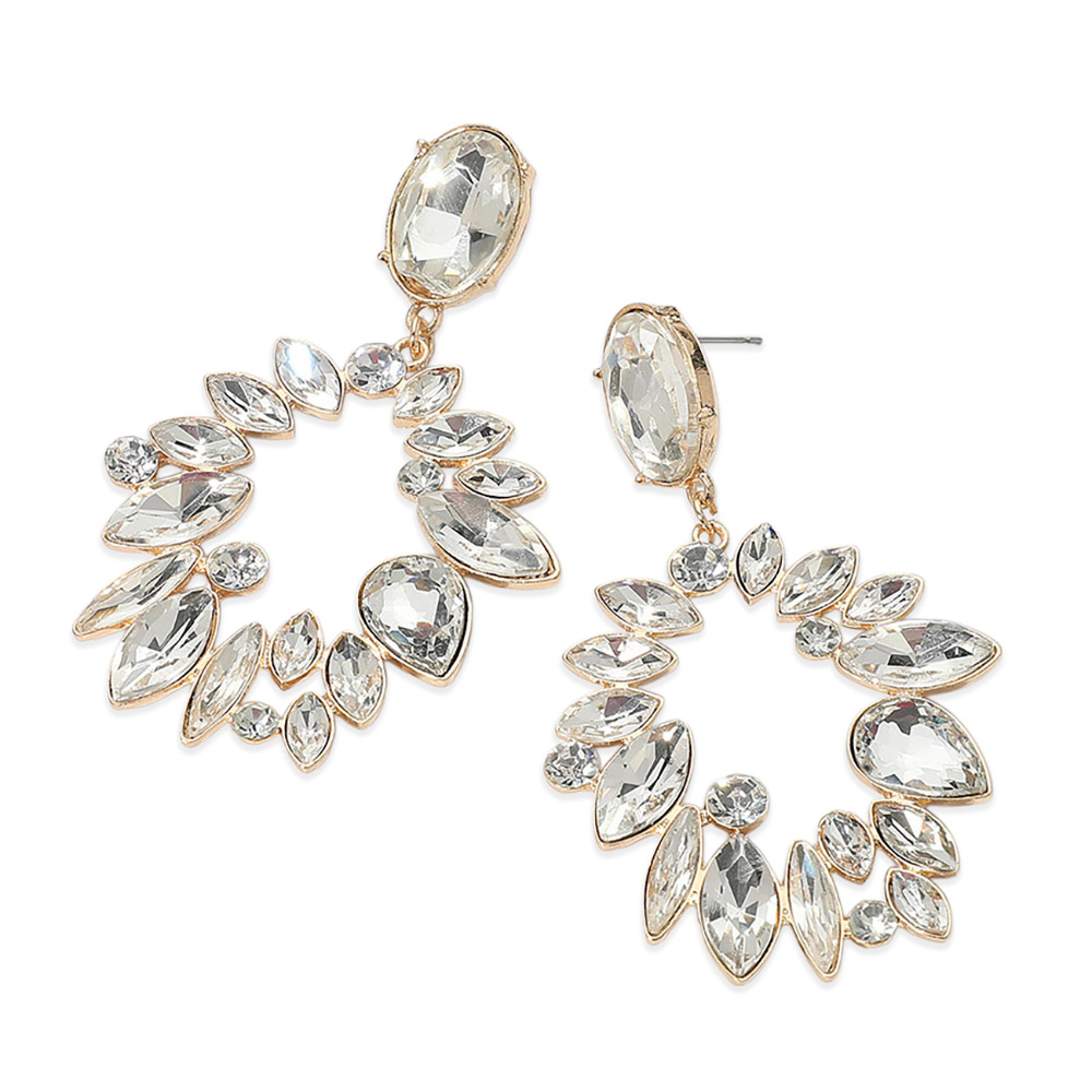 Details • Size : 1.8" X 3" • Post Back • Elevate your look with these dazzling marquise-cut crystal drop earrings in a glamorous open-circle design. Featuring a radiant finish and brilliant stones, these earrings are perfect for weddings, evening events, or any occasion that calls for extra sparkle. Lightweight yet bold, they make a chic statement effortlessly. • Lead and Nickel Compliant
