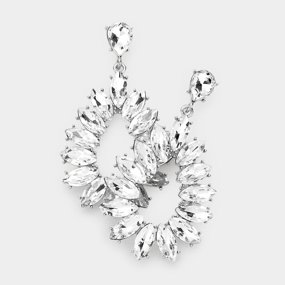 Marquise Stone Cluster Open Teardrop Dangle Evening Earrings