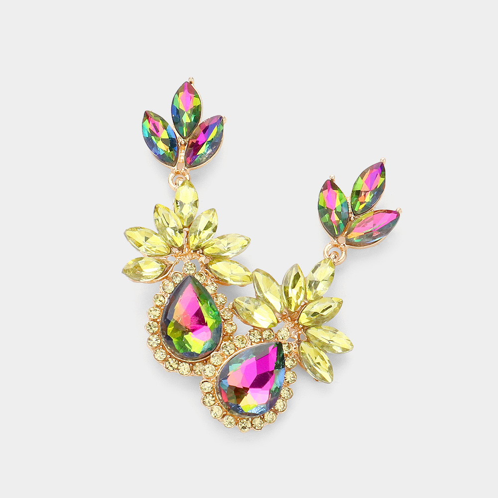 Marquise Stone Cluster Teardrop Accented Dangle Evening Earrings