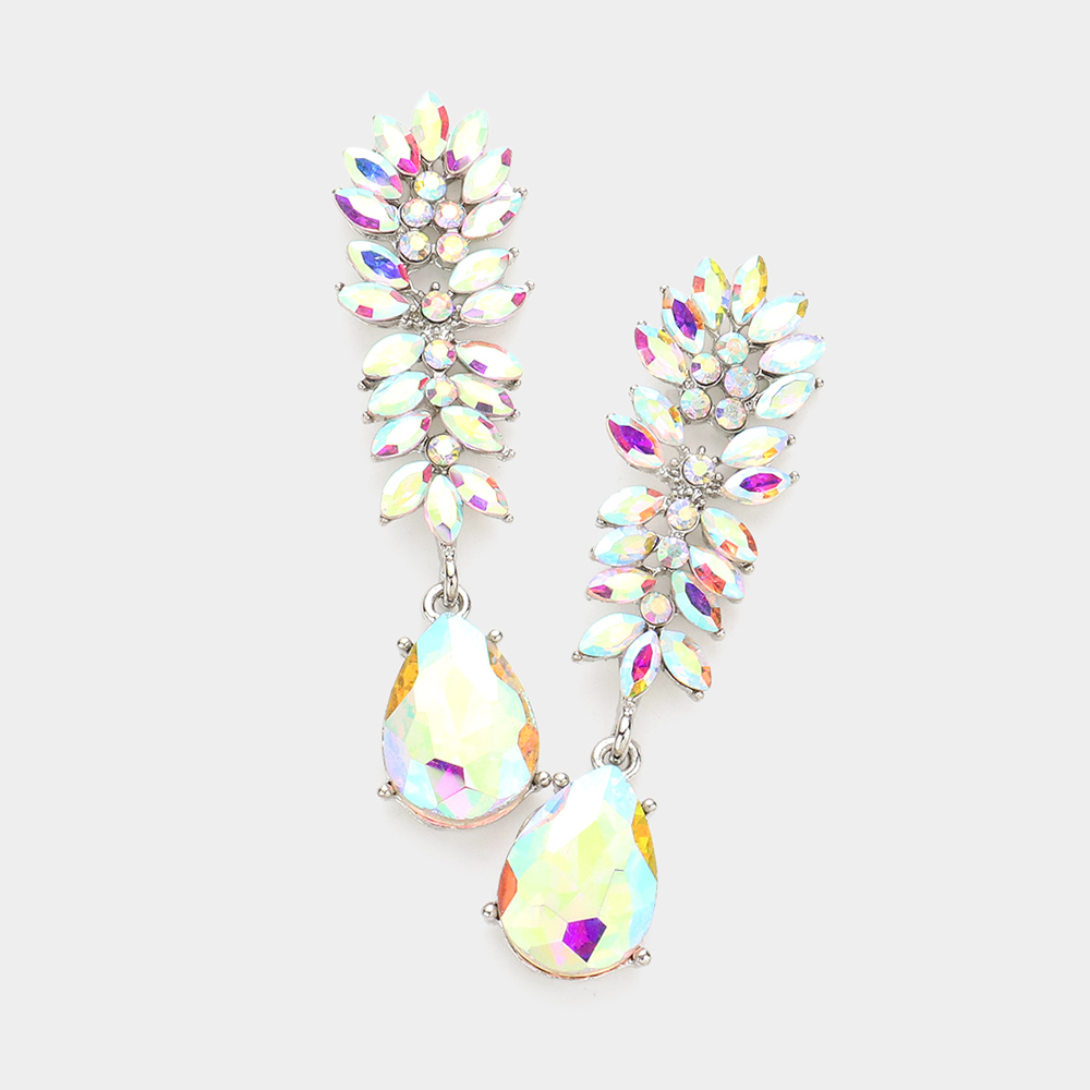 Rhinestone Trimmed Teardrop Stone Dangle Evening Earrings