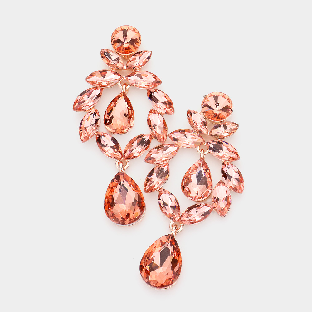 Marquise Stone Cluster Teardrop Link Dangle Evening Earrings