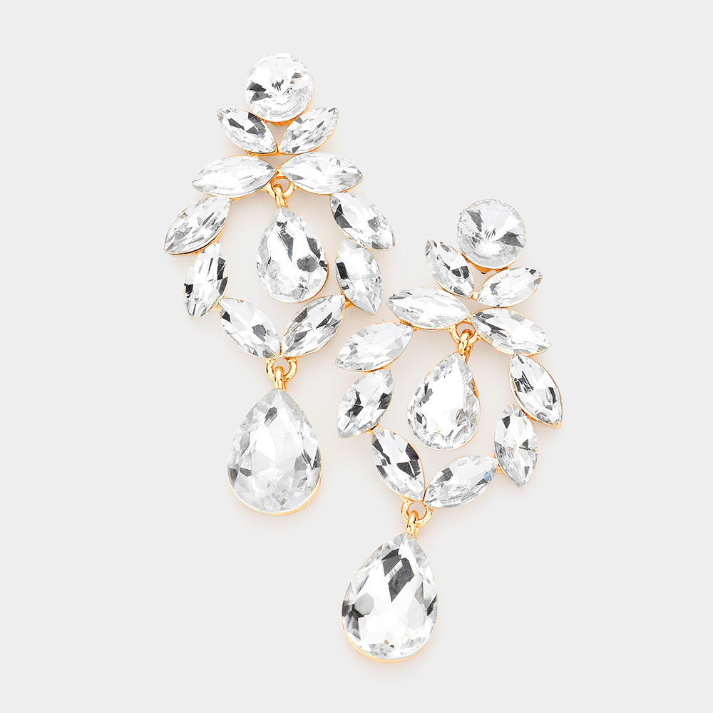 Marquise Stone Cluster Flower Evening Earrings