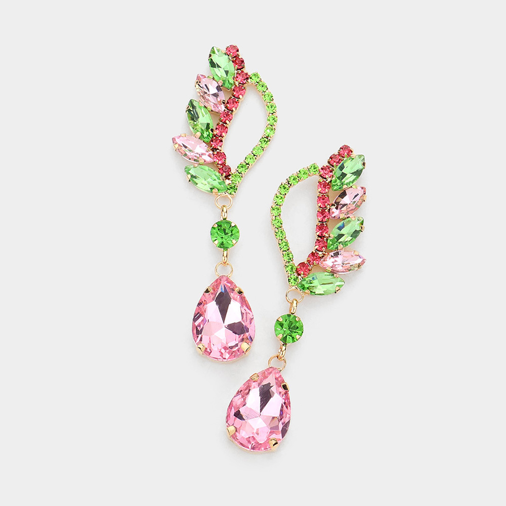 Marquise Stone Cluster Teardrop Link Dangle Evening Earrings