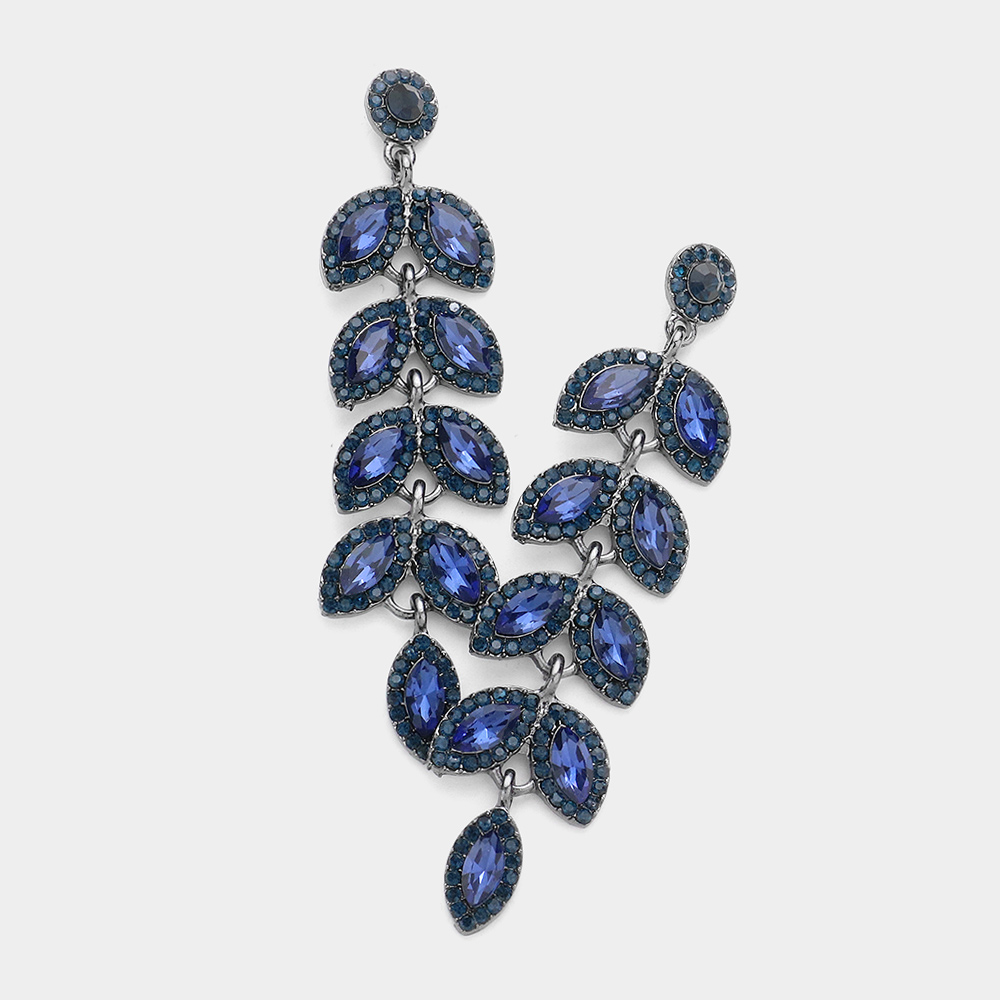 Marquise Stone Cluster Vine Dangle Evening Earrings