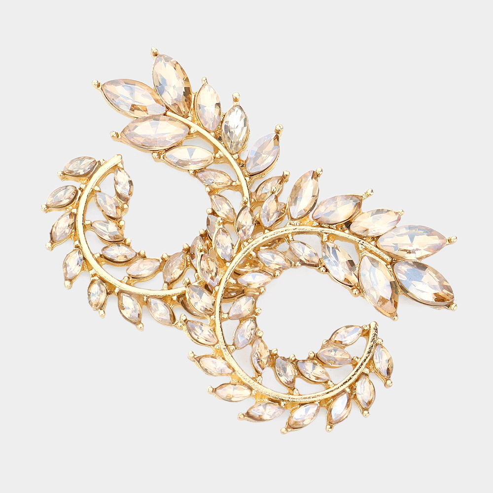 White Gold Dipped Marquise CZ Stone Cluster Embellished Stud Earrings