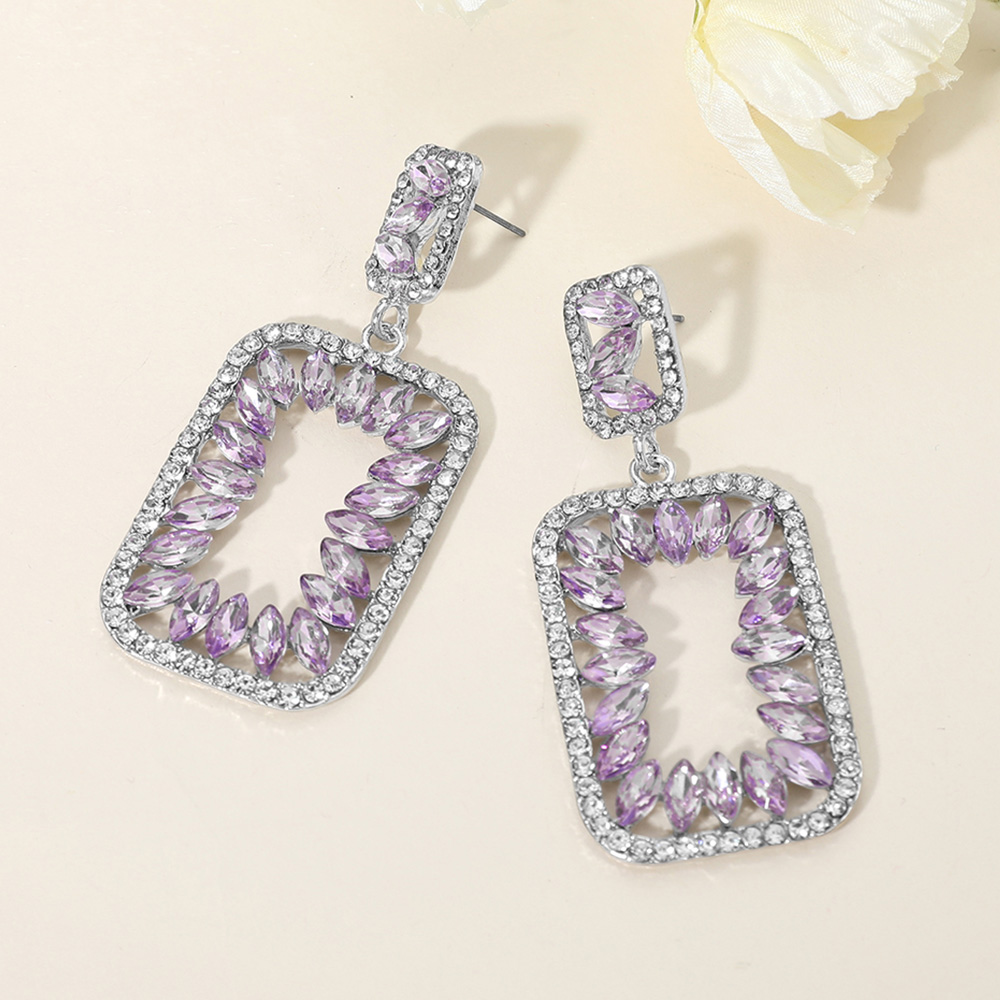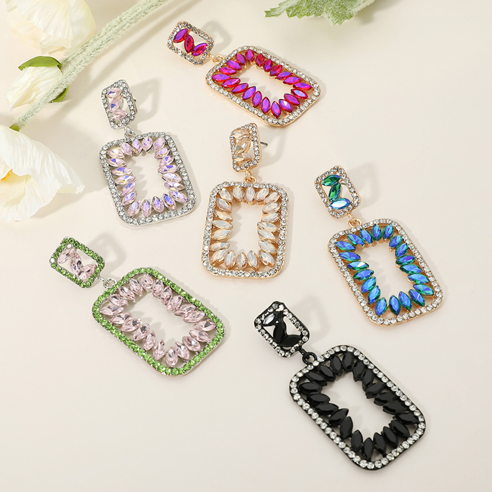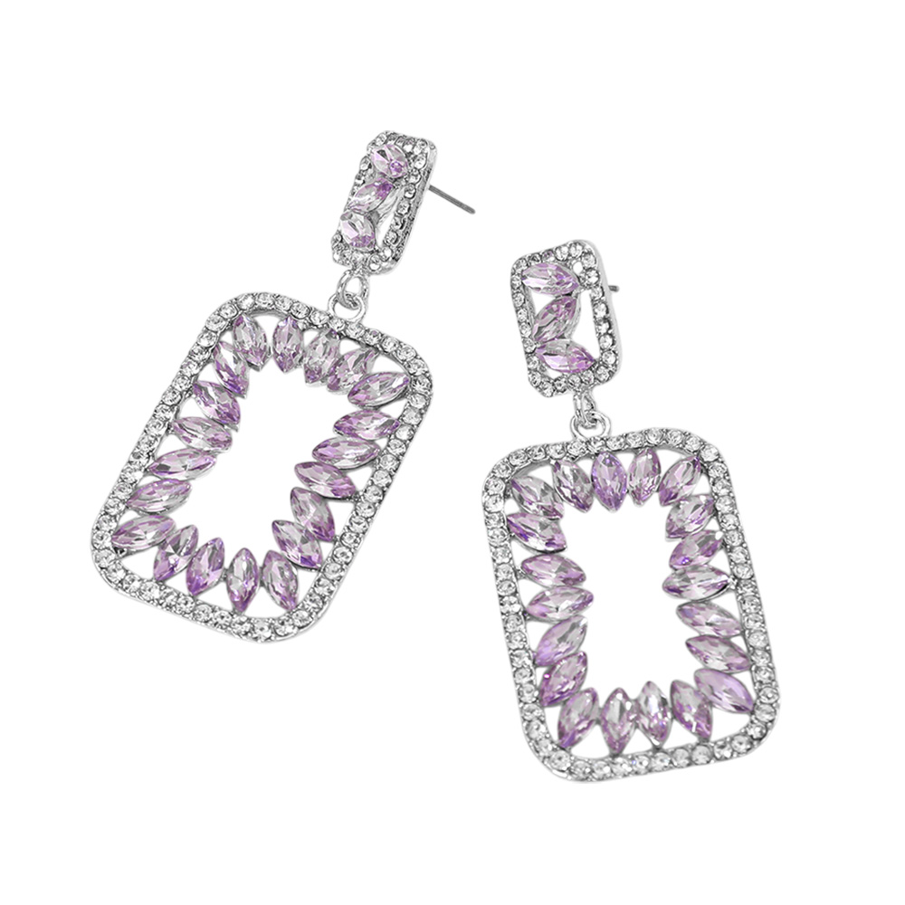 Marquise Stone Embellished Open Rectangle Frame Dangle Evening Earrings