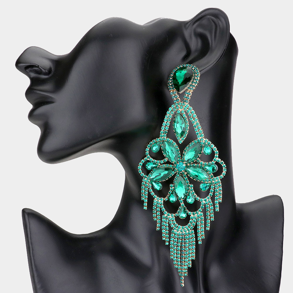 Flower Teardrop Stone Embellished Chandelier Dangle Earrings