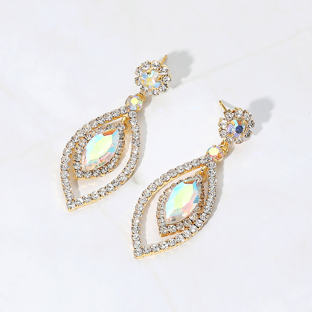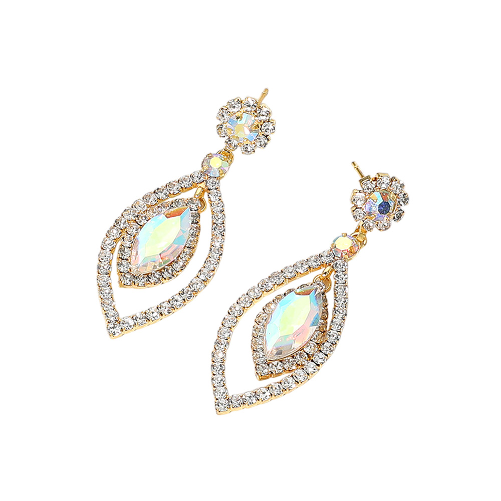 Marquise Stone Pointed Rhinestone Paved Dangle Earrings