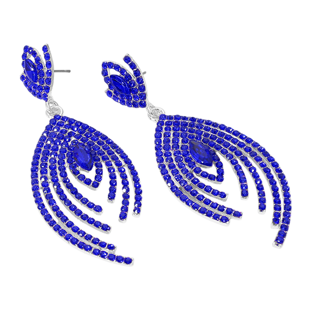 Marquise Stone Pointed Rhinestone Paved Peacock Chandelier Dangle Evening Earrings