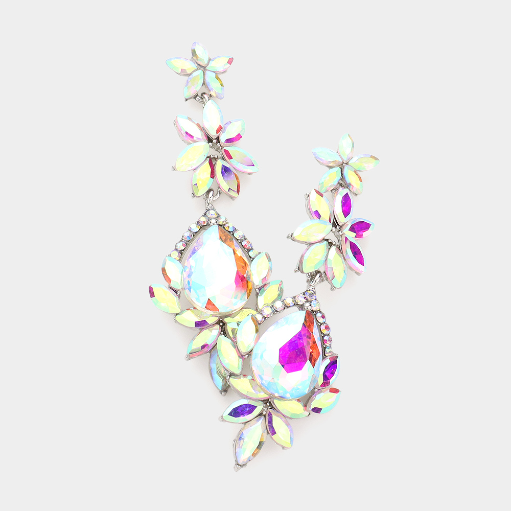 Marquise Stone Teardrop Floral Dangle Evening Earrings