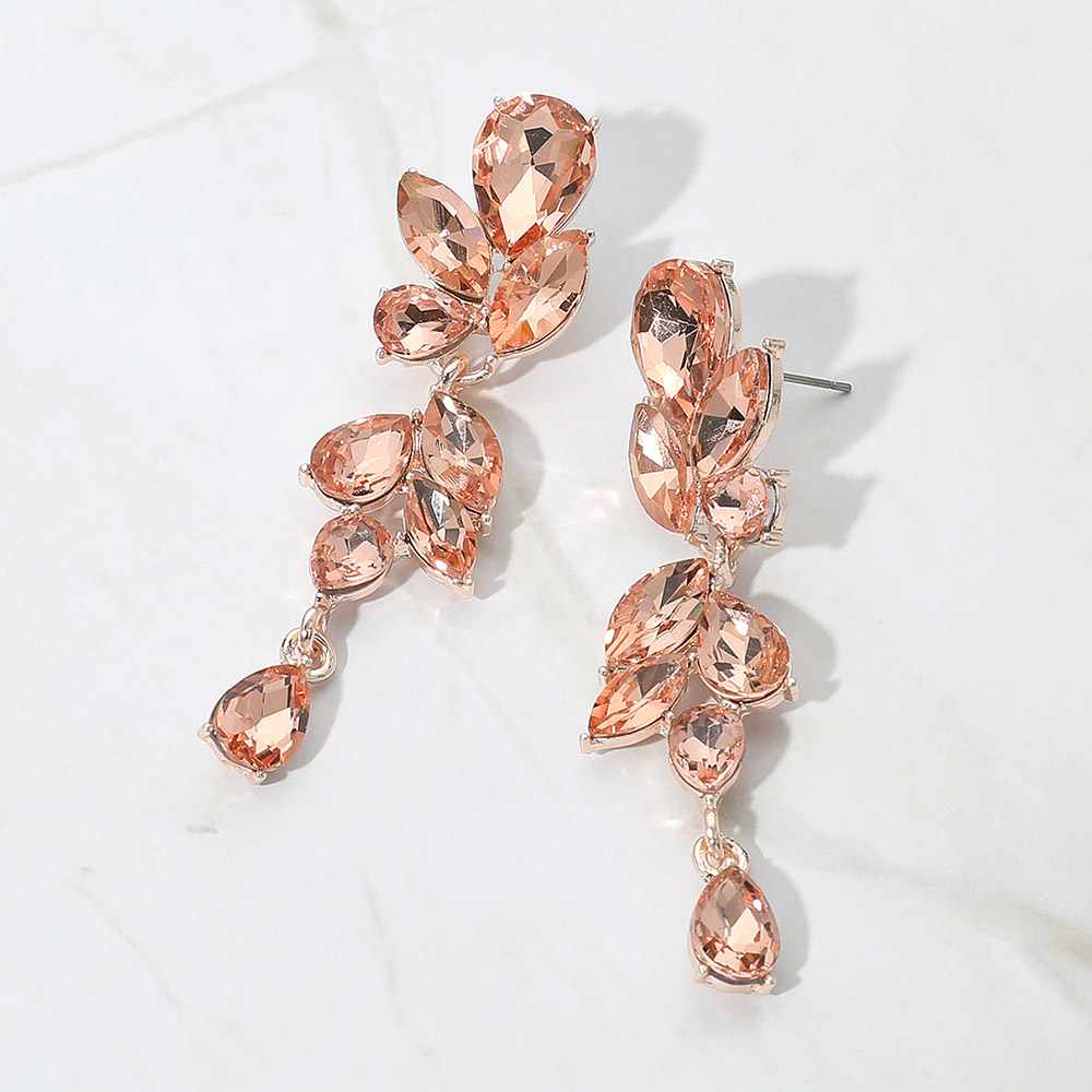 Details • Size : 0.6" X 2.6" • Post Back • Elevate your style with these elegant teardrop crystal leaf dangle earrings. Designed to sparkle with every movement, they add a refined, graceful touch to weddings, proms, and formal events. • Lead and Nickel Compliant