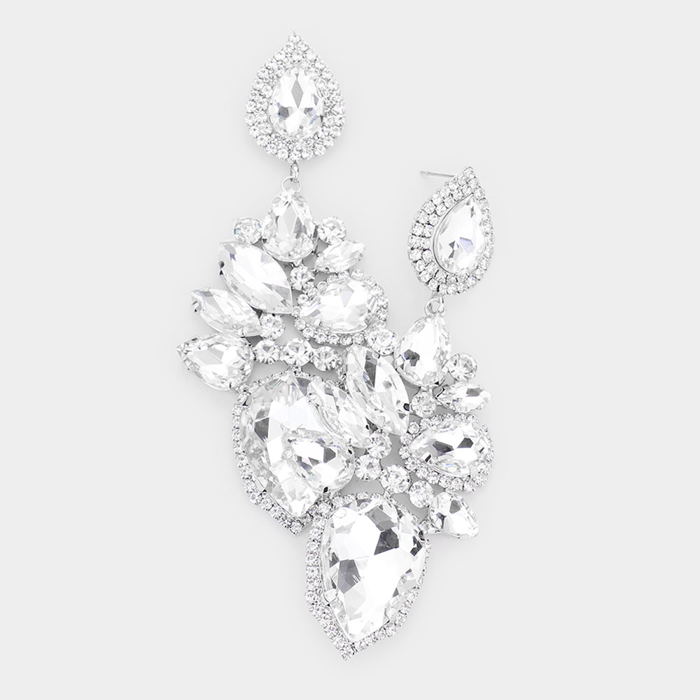 Marquise Teardrop Stone Cluster Dangle Evening Earrings