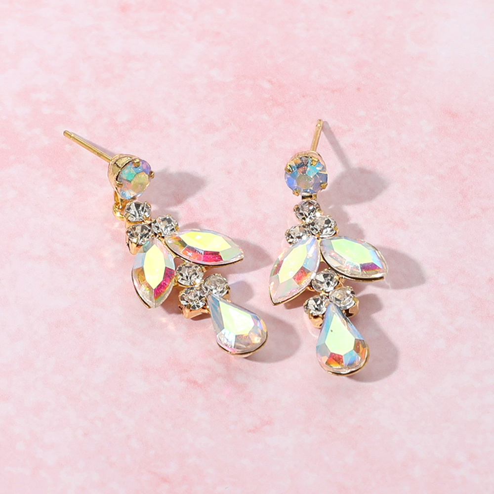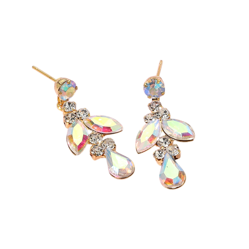Marquise Teardrop Stone Cluster Dangle Evening Earrings