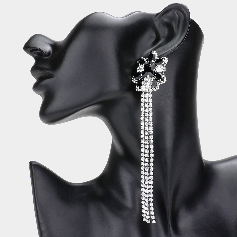 Multi Stone Cluster Dropped Rhinestone Dangle Evening Earrings