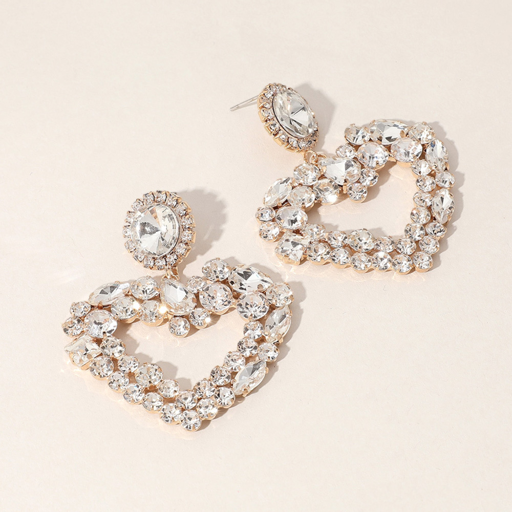 Multi Stone Cluster Open Heart Dangle Evening Earrings