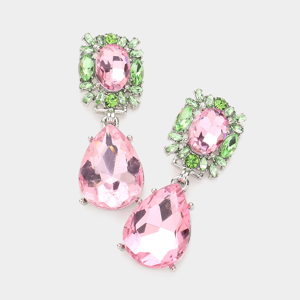 Multi Stone Cluster Teardrop Link Dangle Evening Earrings