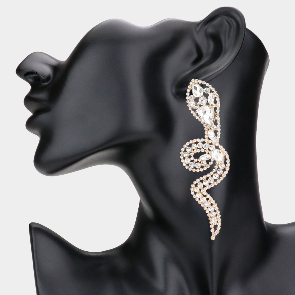 Rhinestone Embellished Brass Metal Snake Pendant Necklace