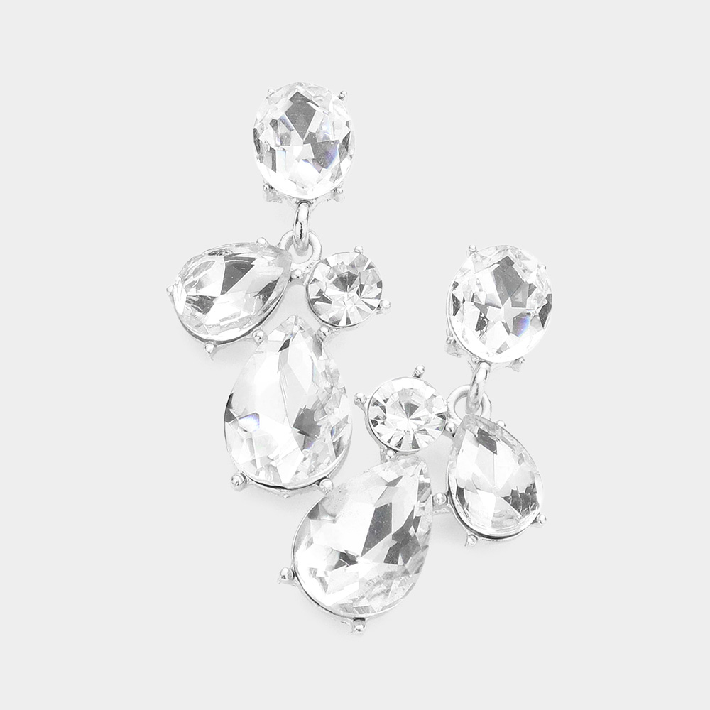 Marquise Teardrop CZ Stone Cluster Dangle Evening Earrings