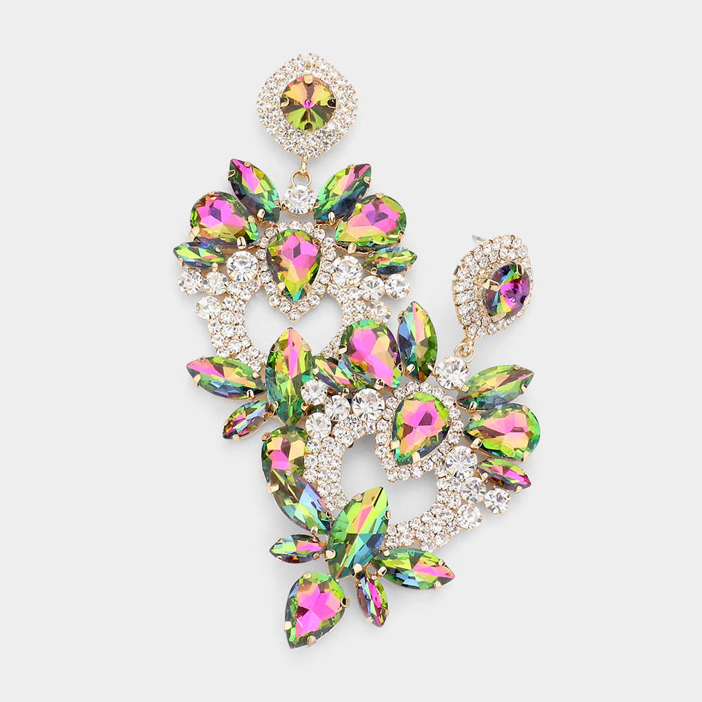 Triple Oval Glass Stone Drop Down Dangle Evening Earrings