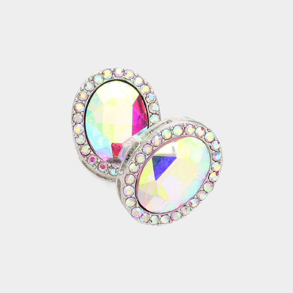 Rhinestone Trim Teardrop Stone Accented Evening Earrings