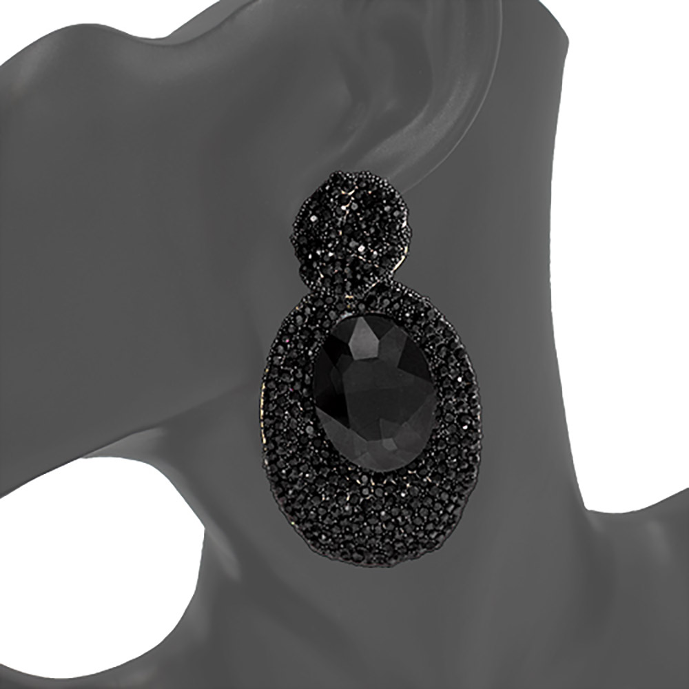Oval Glass Stone Pointed Rhinestone Paved Dangle Evening Earrings