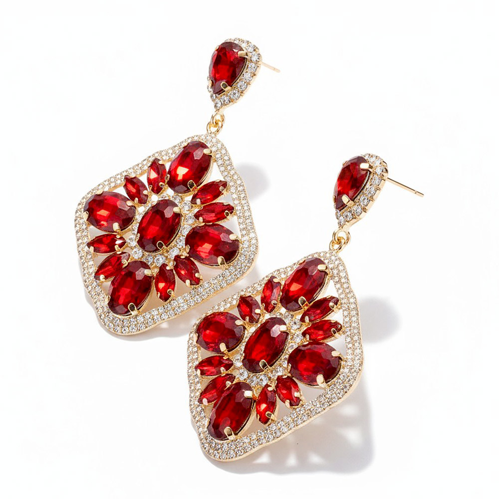 • Make a dazzling impression with these vibrant gemstone statement earrings. Designed with a radiant mix of sparkling stones, they capture luxury and confidence in every detail—perfect for parties, weddings, or elevating your everyday style with striking sophistication.