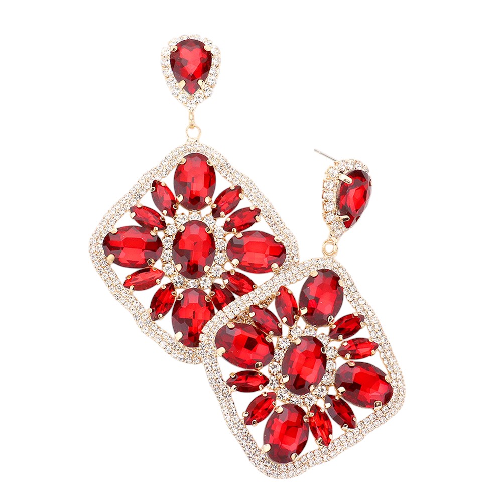 Flower Teardrop Stone Cluster Dangle Evening Earrings