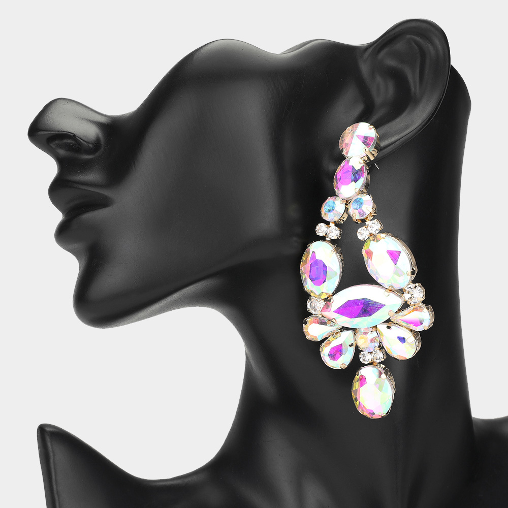 Oval Marquise Stone Cluster Chandelier Evening Earrings