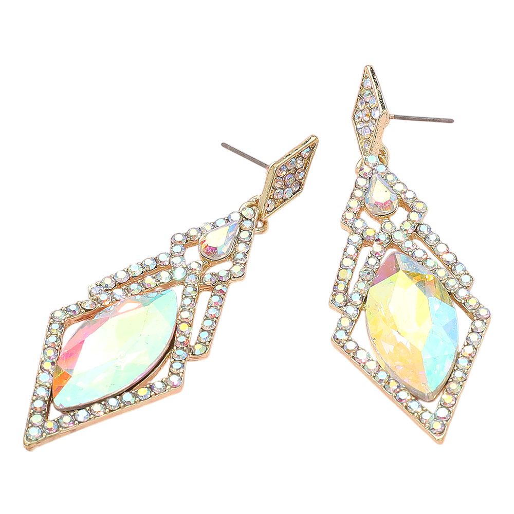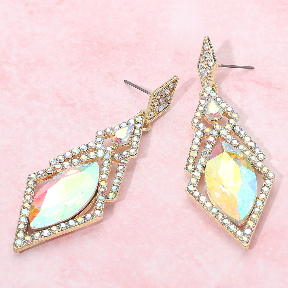 • Elegant statement earrings with a modern geometric design and sparkling crystals, ideal for weddings, parties, or glamorous evening events.