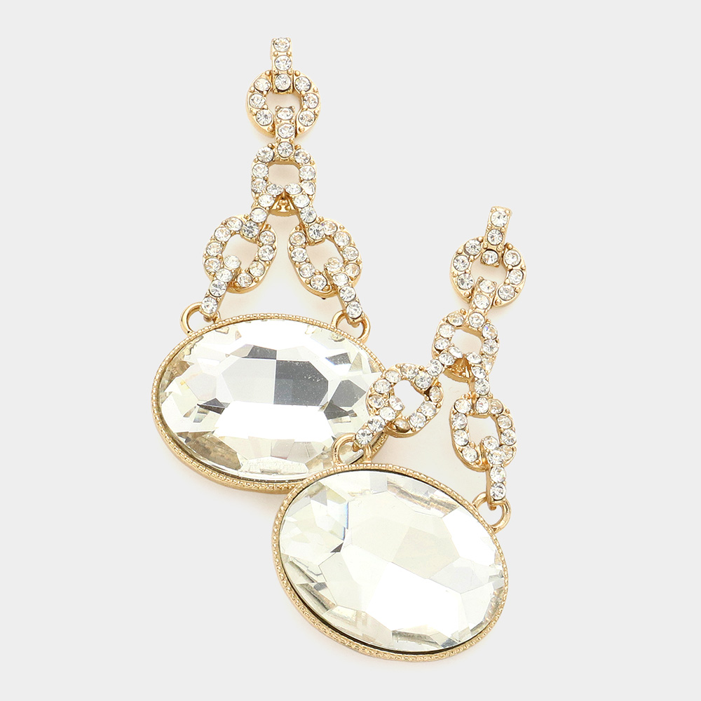 Oval Rhinestone Ornate Evening Earrings