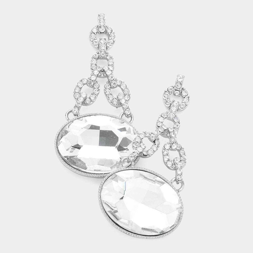 Stone Cluster Open Rectangle Dangle Evening Earrings