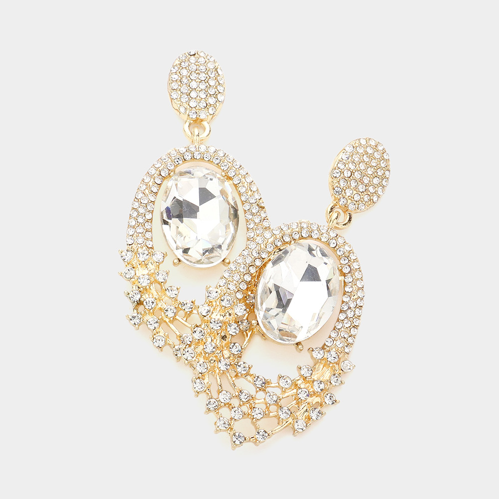 Stone Centered Rhinestone Paved Rim Hammered Metal Flower Pointed Statement Necklace