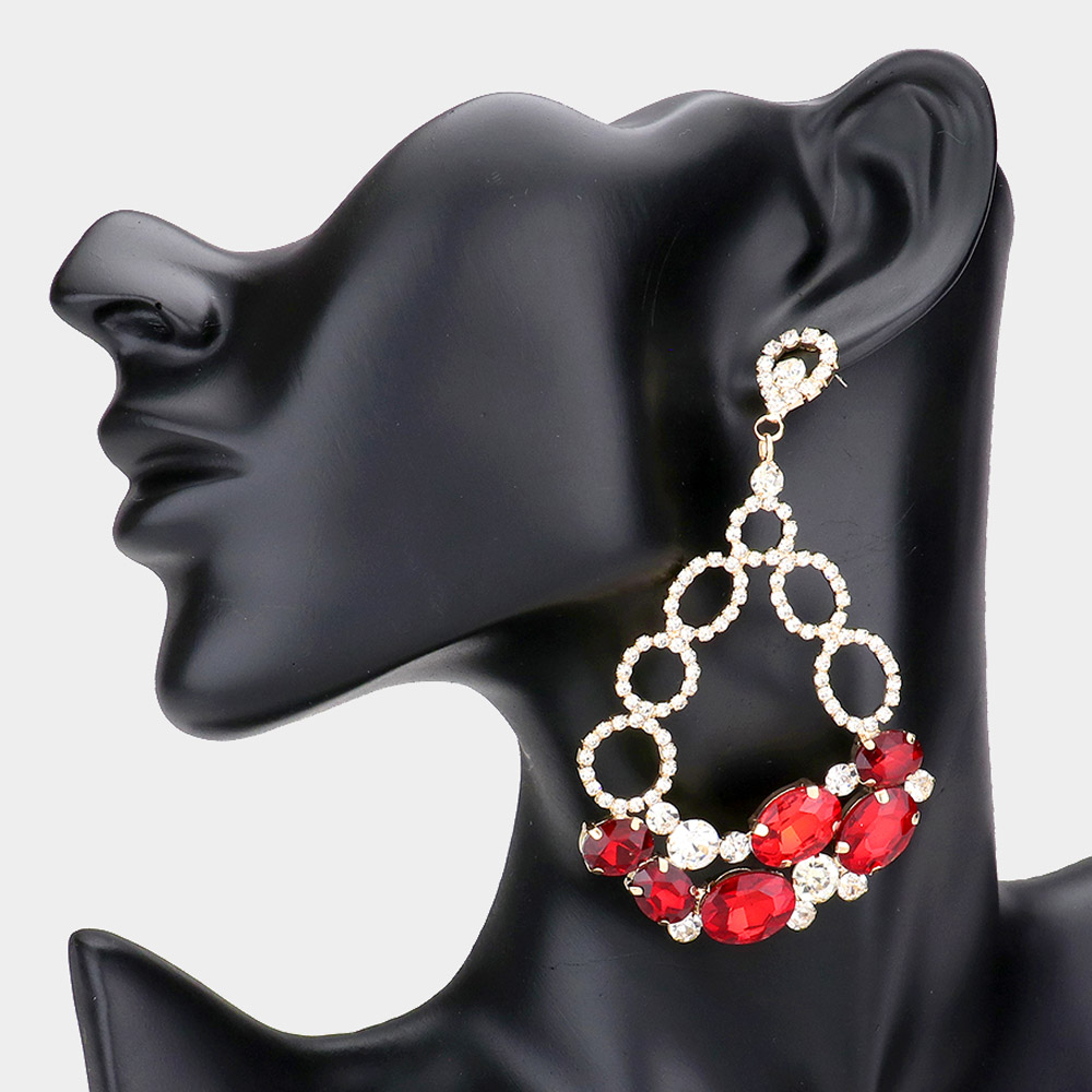 • Bold drop earrings with sparkling loops and clustered gemstones, perfect for adding dramatic flair to evening or formal looks. Lightweight yet eye-catching for confident, elegant styling.