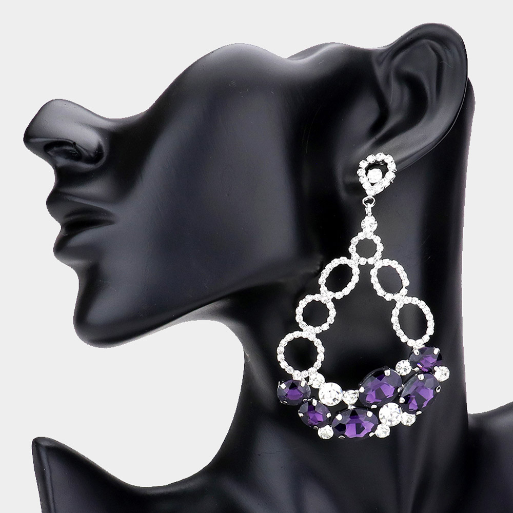 Details • Size : 1.5" X 4.25" • Post Back • Bold drop earrings with sparkling loops and clustered gemstones, perfect for adding dramatic flair to evening or formal looks. Lightweight yet eye-catching for confident, elegant styling. • Lead and Nickel Compliant