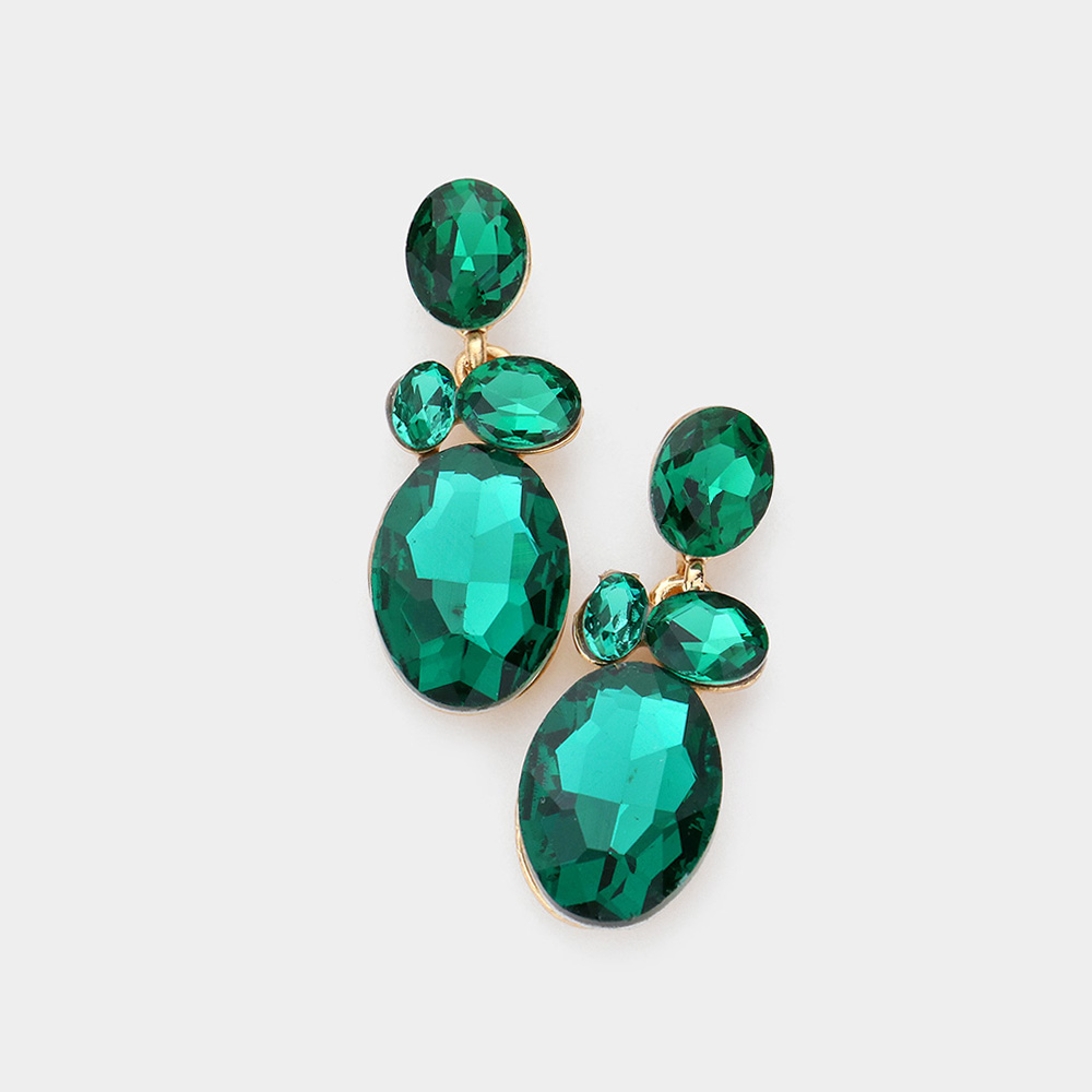 Marquise Glass Crystal Oval Cluster Vine Evening Earrings