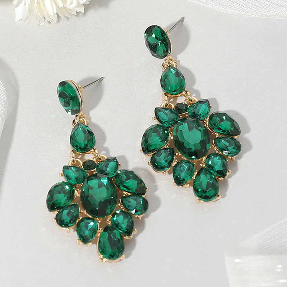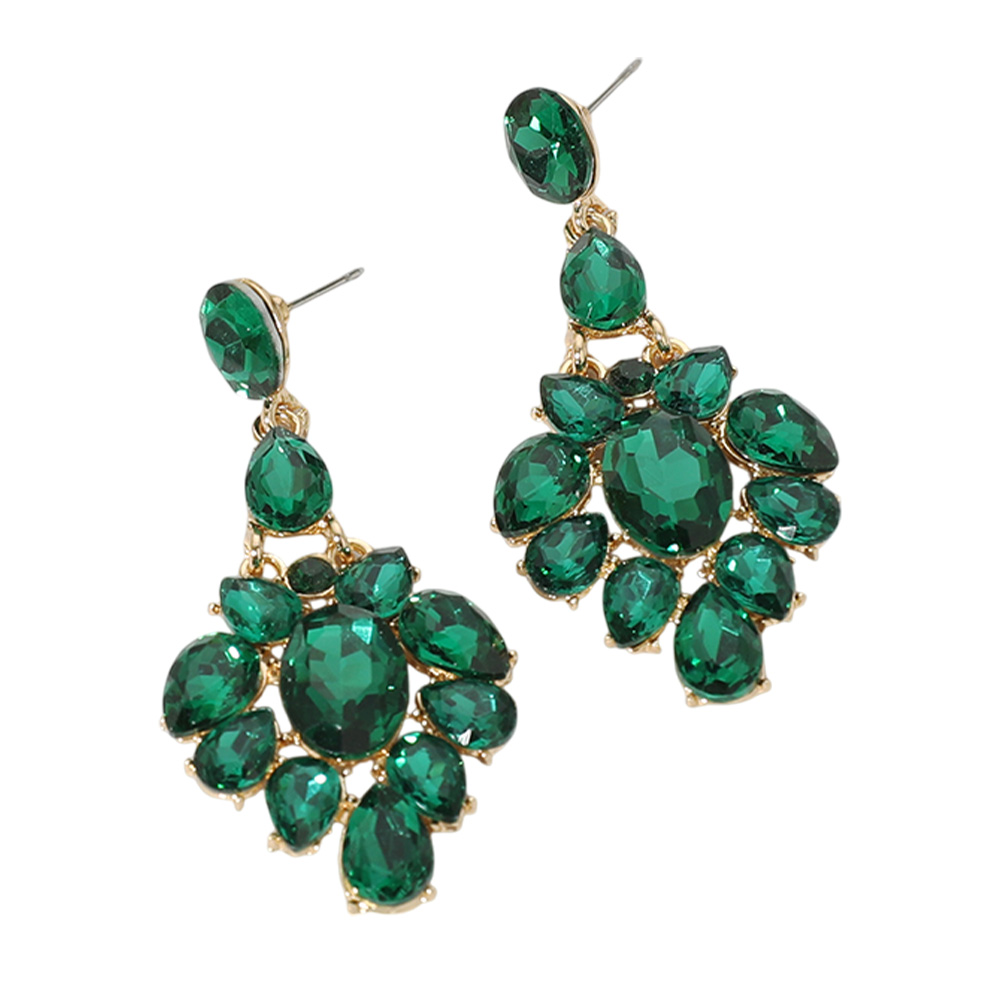 Oval Teardrop Stone Cluster Evening Earrings