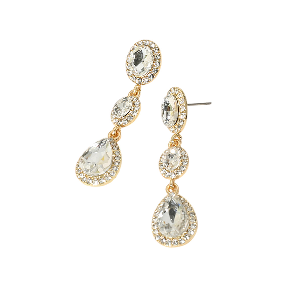 Oval Teardrop Stone Cluster Link Dropdown Evening Earrings