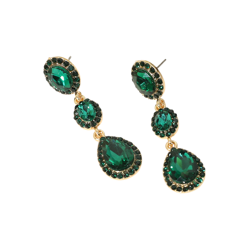 Oval Teardrop Stone Cluster Link Dropdown Evening Earrings