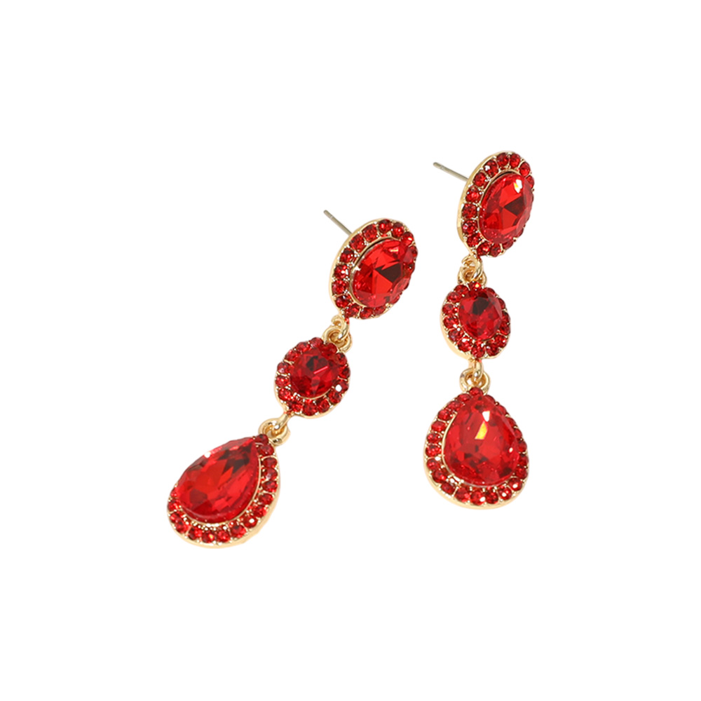 Oversized Oval Teardrop Stone Cluster Accented Rhinestone Chandelier Evening Earrings